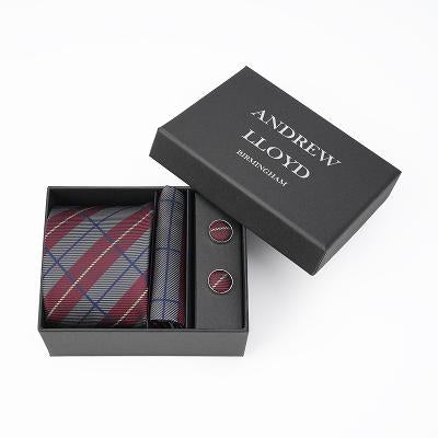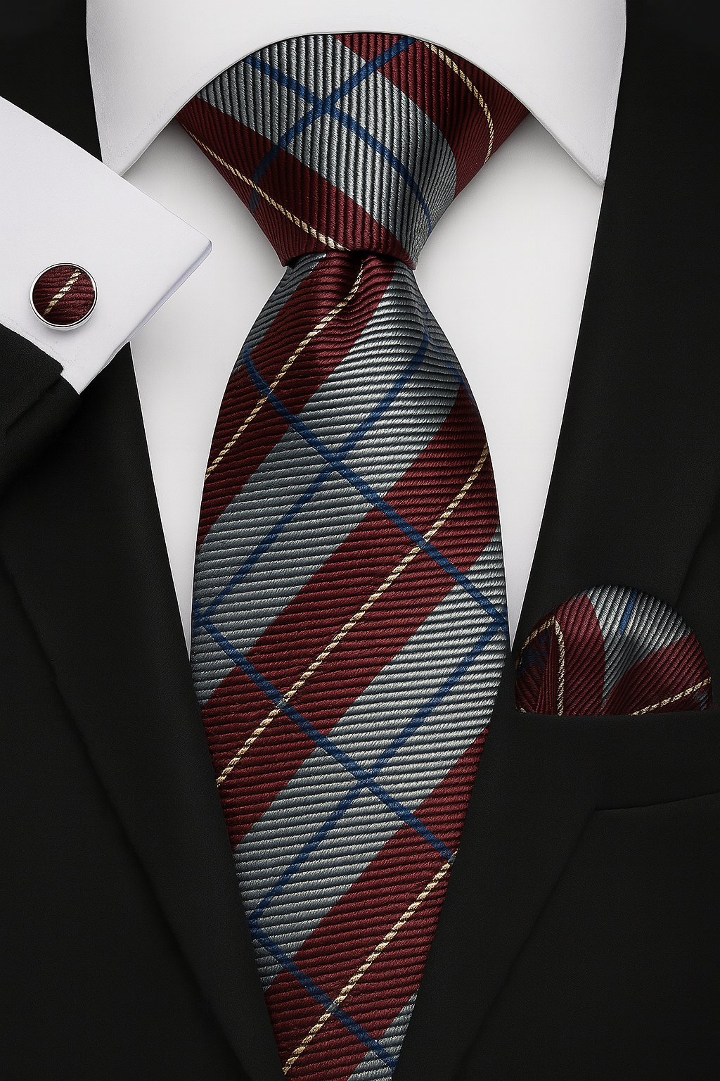 Andrew Lloyd 100% Silk Tie – Burgundy Blue Plaid
