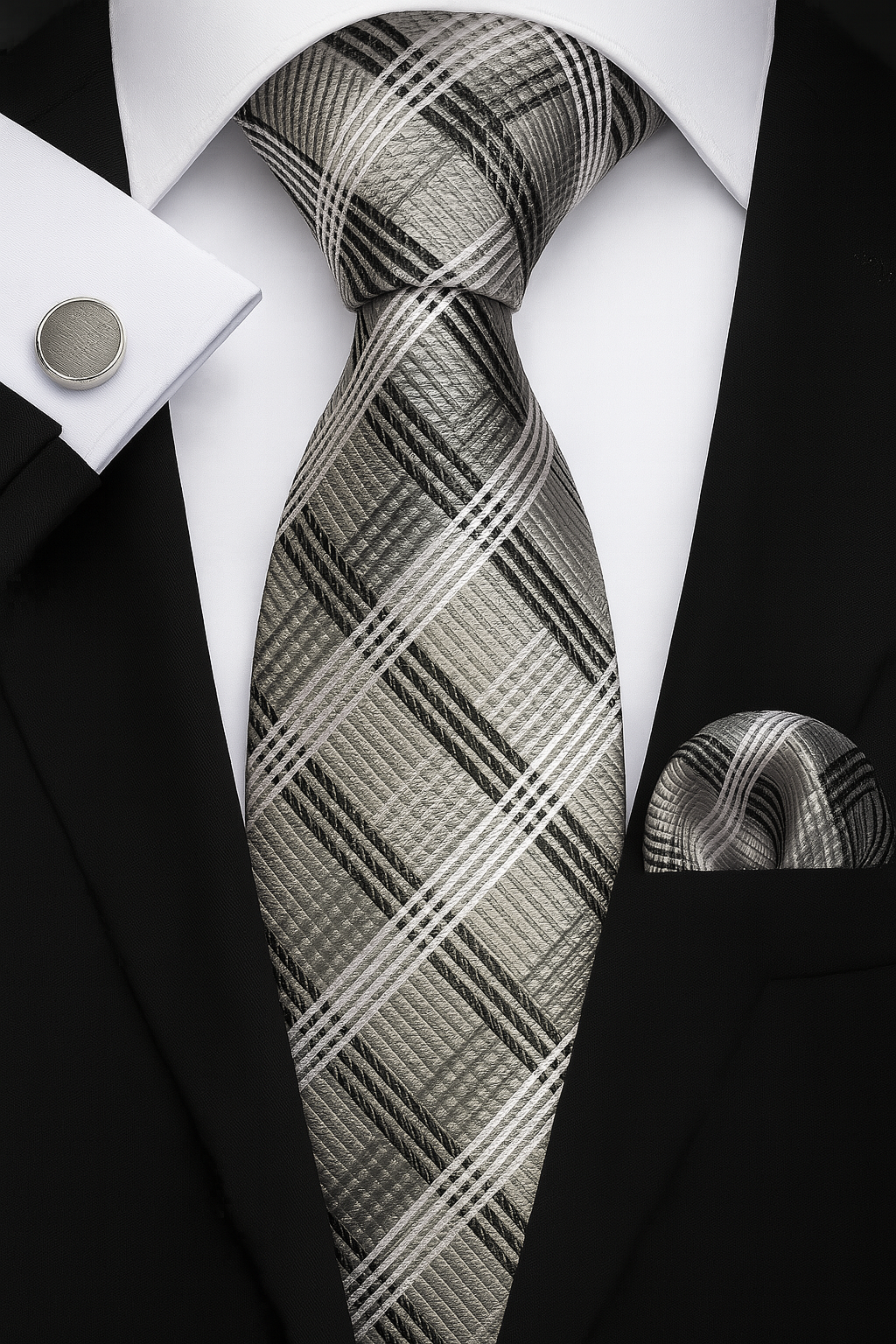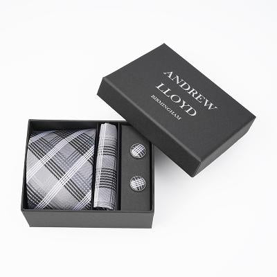 Andrew Lloyd 100% Silk Tie – Silver Houndstooth Check